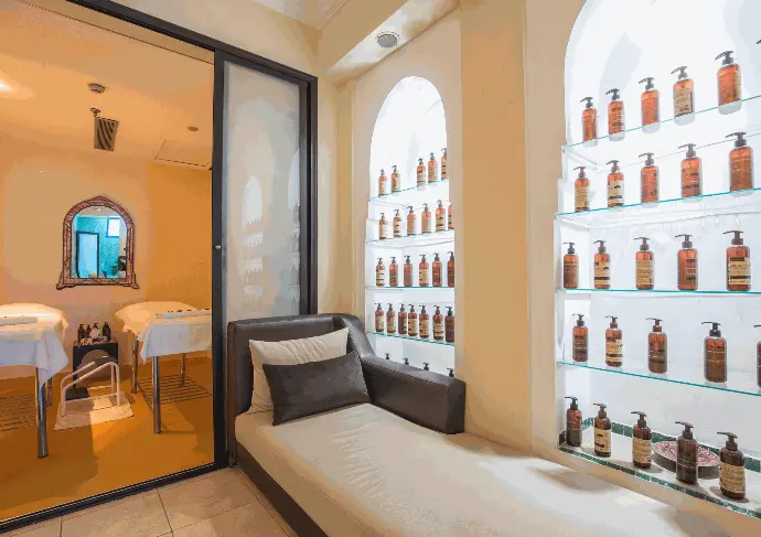 Le Spa Royal Mirage Deluxe dispose de 3 salles de soins, a hammam, a salon, a espace fitness, et une Salle de Jeux, offrant loisirs et divertissement supplementaires a nos clients.